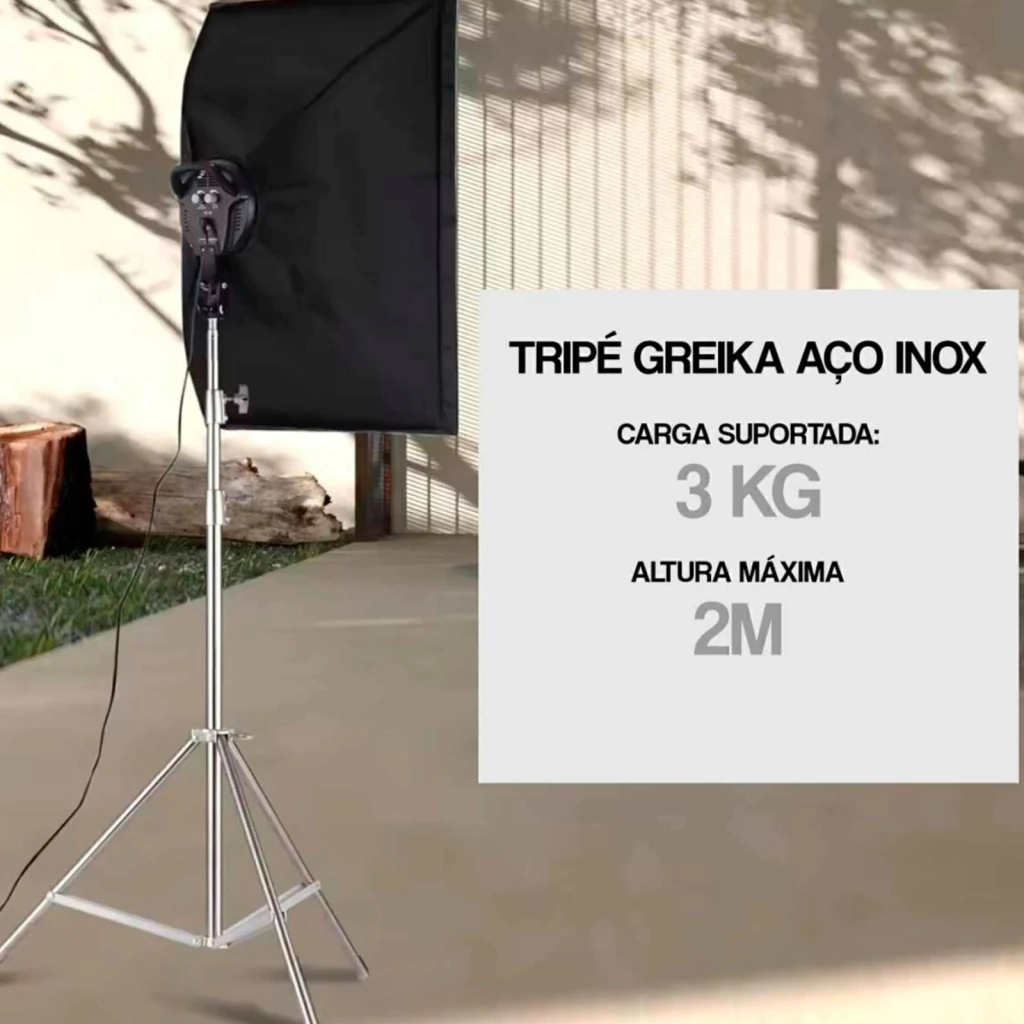 Os tripés Greika GLF-X2 possuem estrutura em alumínio resistente, altura ajustável e travas seguras, garantindo total firmeza para iluminação, flashes, rebatedores ou acessórios de estúdio.