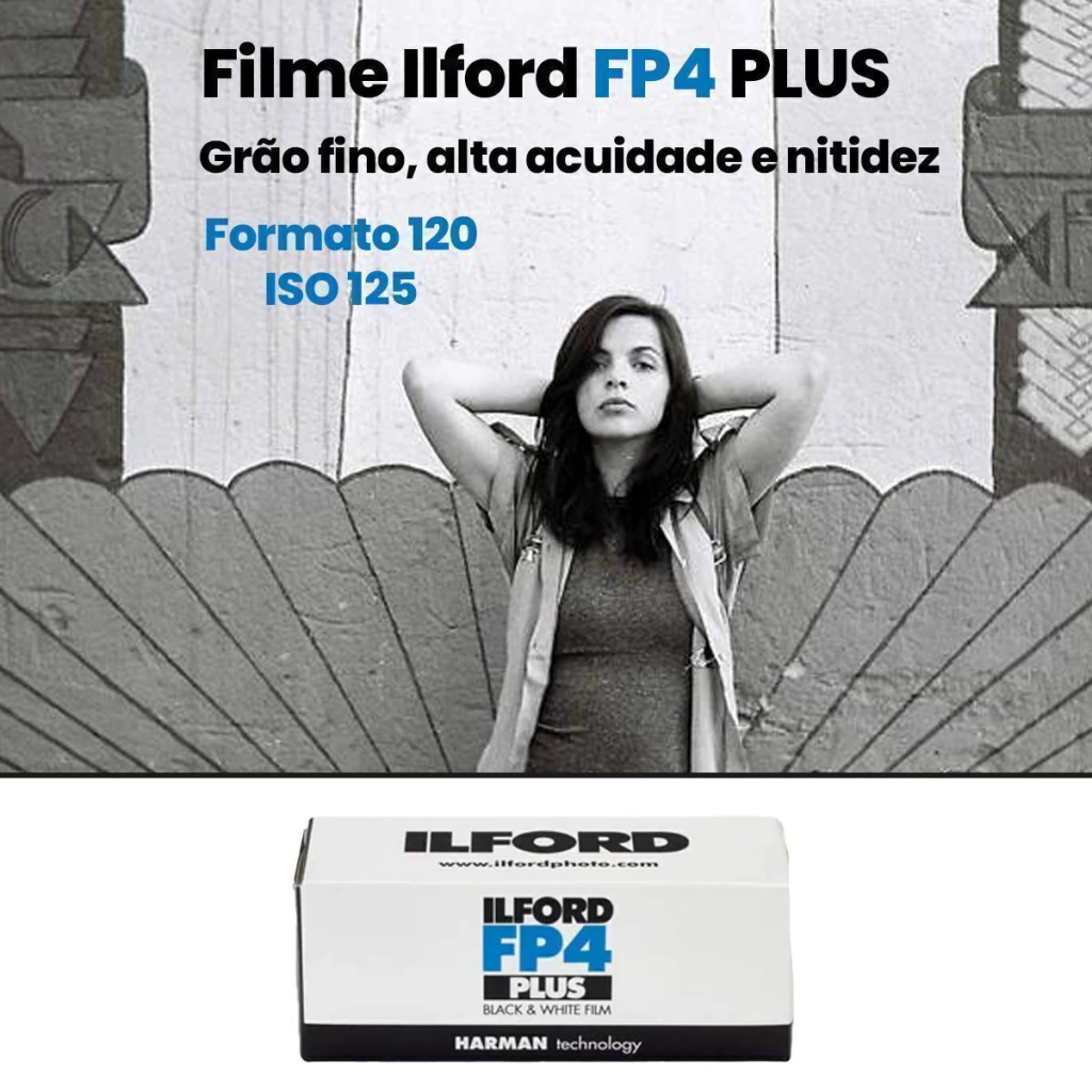 O FP4 Plus da Ilford é um filme negativo preto e branco tradicional de velocidade média, caracterizado por uma estrutura de granulação fina com alta precisão e nitidez, tornando-o adequado para ampliação e digitalização.