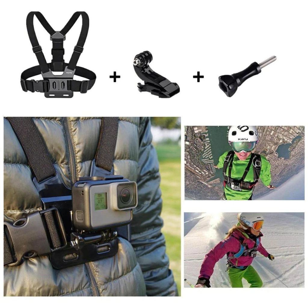 O kit de acessórios 54 em 1 atende às aplicações de diferentes tipos de esportes de suas câmeras de ação, como corrida, bicicleta, direção, skate, escalada, deriva, para-quedas, esqui, surf, mergulho, tiro, motocicleta, etc.
