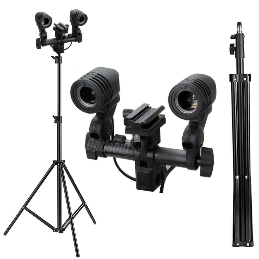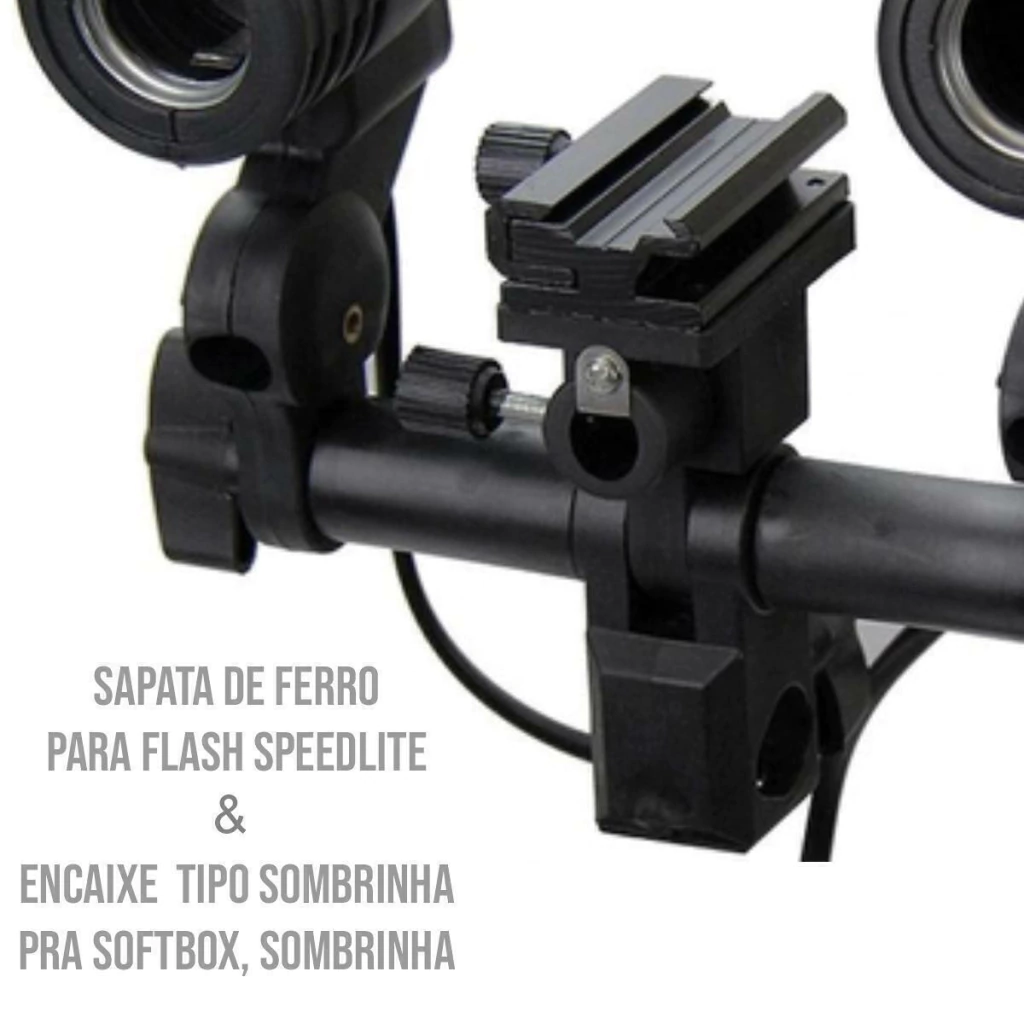 Kit soquete Bocal E27 para até duas lâmpadas e flash Speedlite Canon, Nikon, Sony, Godox, Fuji, etc.