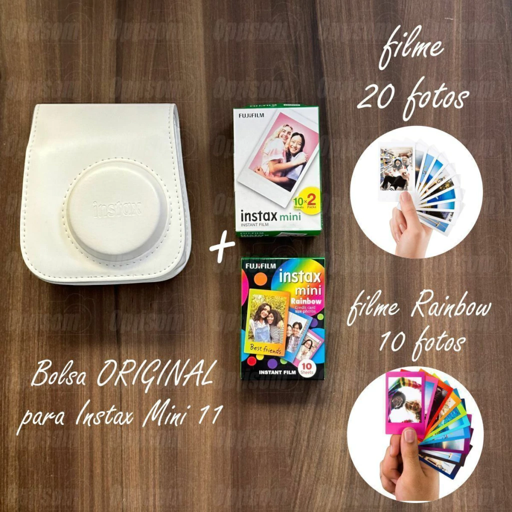 KIT COMPOSTO POR BOLSA ORIGINAL FUJIFILM INSTAX PARA CÂMERA MINI 11 + 20 FOTOS MOLDURA BRANCA + 10 FOTOS EXCLUSIVAS (À SUA ESCOLHA).