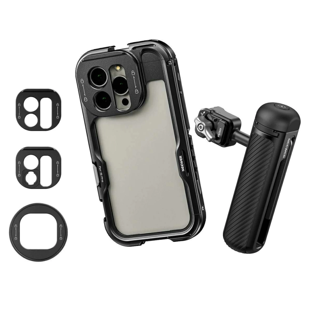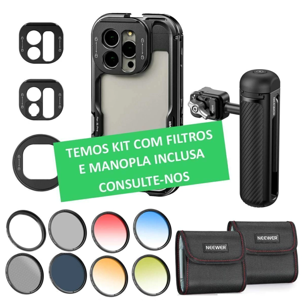 KIT 02 Gaiola CAGE Neewer para iPhone 15 Pro Max com Handle controle remoto bluetooth.