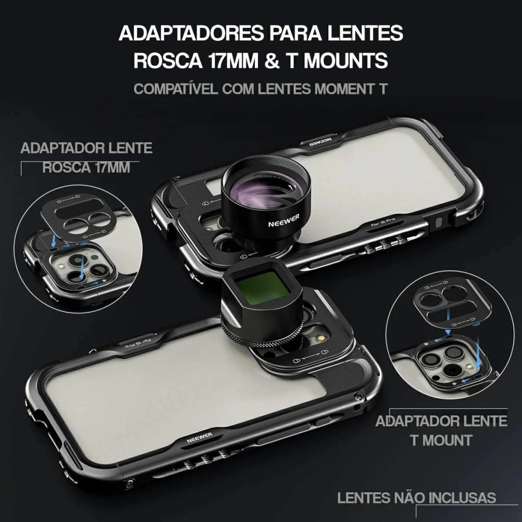 Acople lentes telefotos, grande angulares com rosca 17mm com