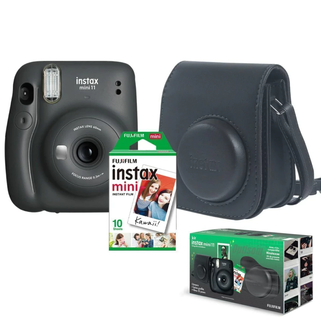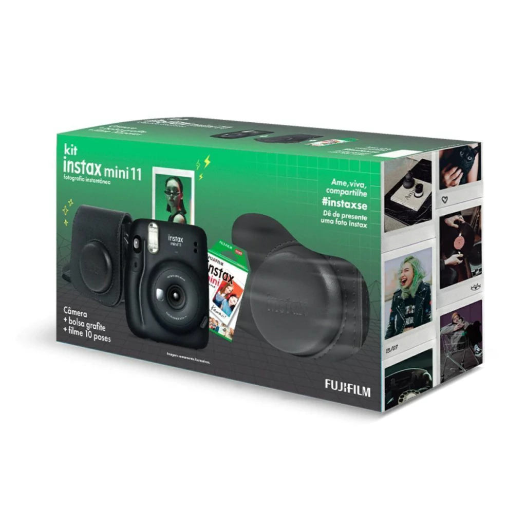 Fotografe e imprima NA HORA suas fotos com esse KIT DE CÂMERA INSTANTÂNEA MINI 11 + PACOTE COM FILMES + BOLSA FUJIFILM GRAFITE.