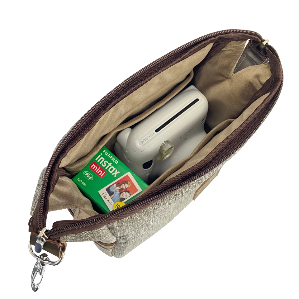 O design fino da câmera também apresenta um novo logotipo INSTAX gravado sobre a porta do filme, um anel transparente design sobre a lente e o visor clássico da janela, e inclui duas capas divertidas de botões do obturador de acessórios.
