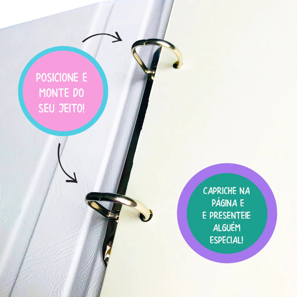 Dimensões das folhas: 15 cm (largura) x 21 cm (altura) - tamanho total, contando respiro dos grampos