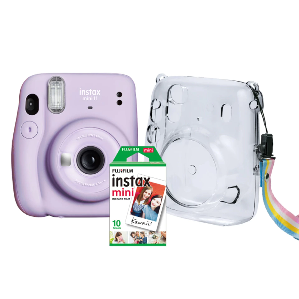 Uma nova visão de uma amada câmera de filme instantâneo, a FUJIFILM INSTAX Mini 11, Lilás, é uma câmera elegante, divertida e moderna capaz de produzir impressões instantâneas do tamanho de cartões de crédito.