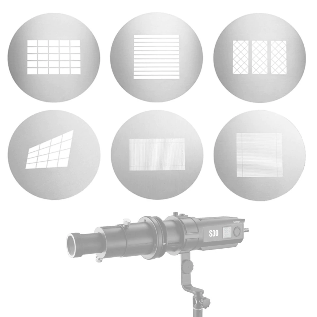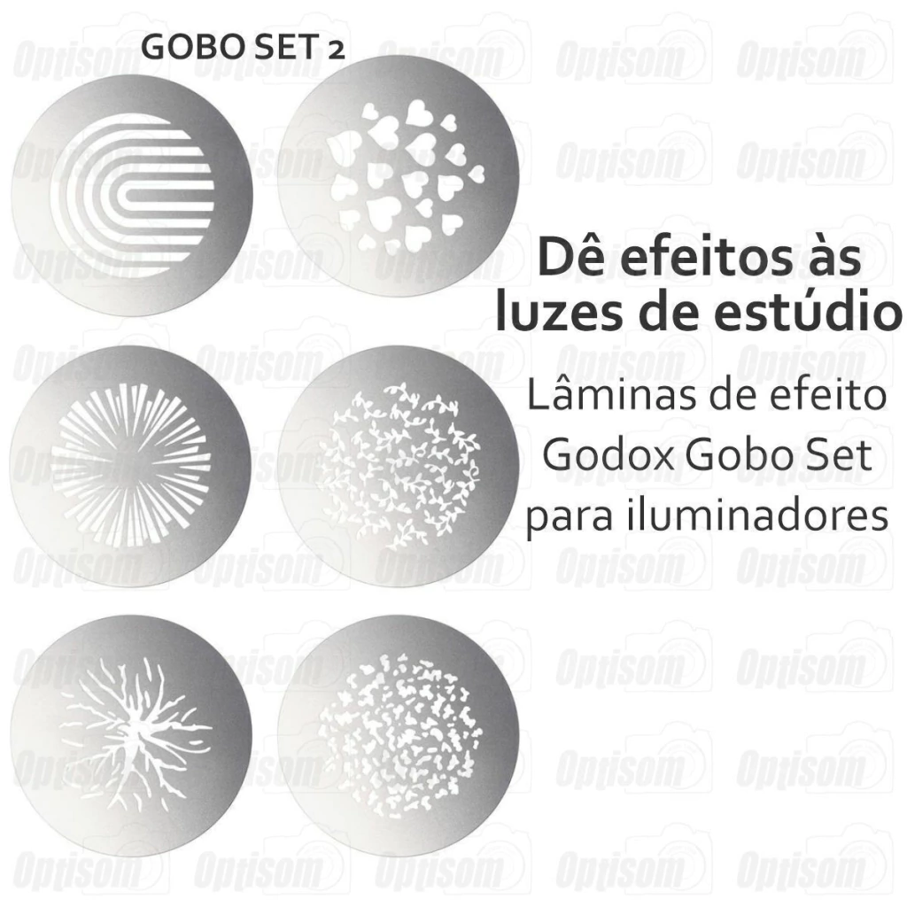 Kit de 6 lâminas de metal Godox GOBO SET para projeção de luz.