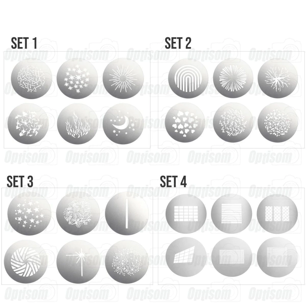 06 Lâminas Godox Gobo Set 1 para efeitos.