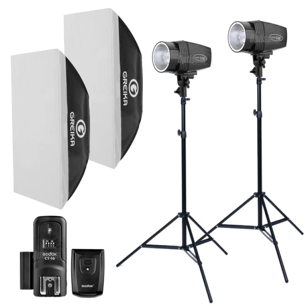 02 Flashes de estúdio K150 da Greika/Godox (Escolha voltagem)