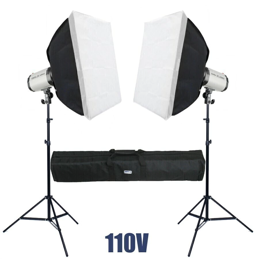 Kit Flash Estúdio Duplo composto por duas tochas Godox 250DI 250W 110V + Dois Tripés de iluminação de 2 metros + Dois Softboxes 60X60CM + Uma Bolsa para transporte !