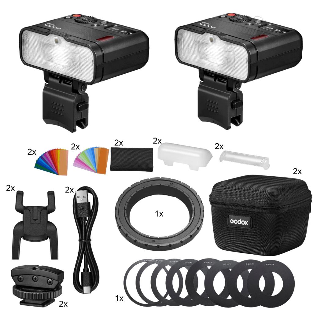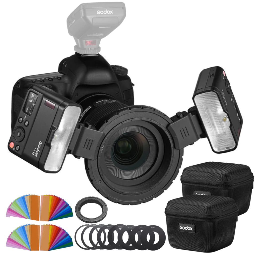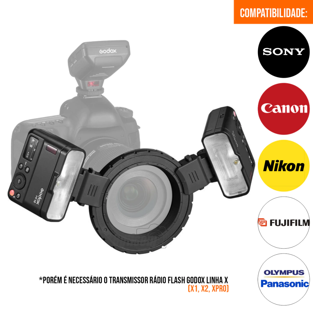 KIT COMPLETO DOIS FLASH MACRO GODOX MF-12 + ANEL ADAPTADOR PARA LENTES