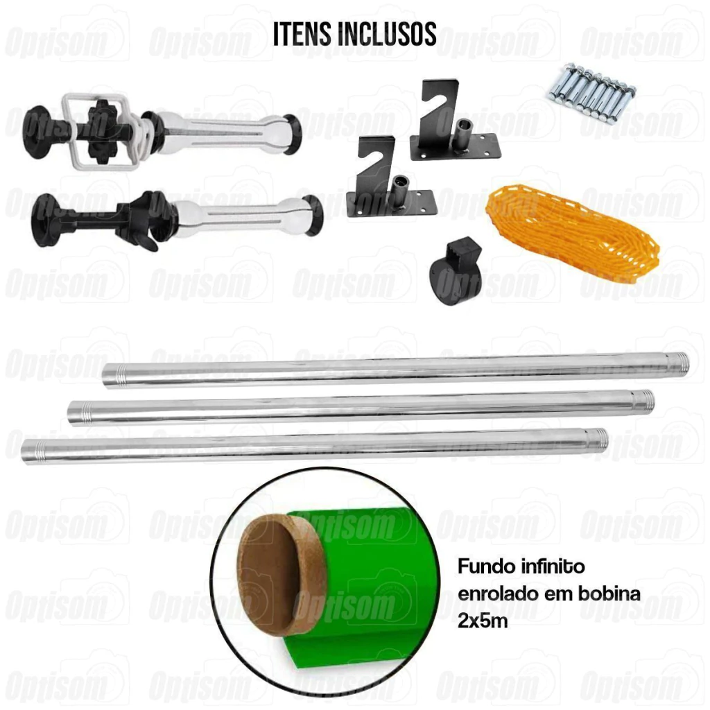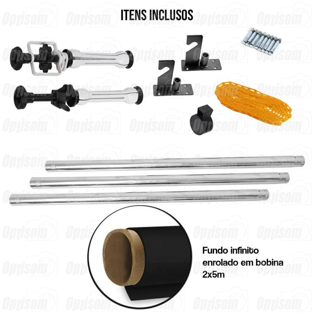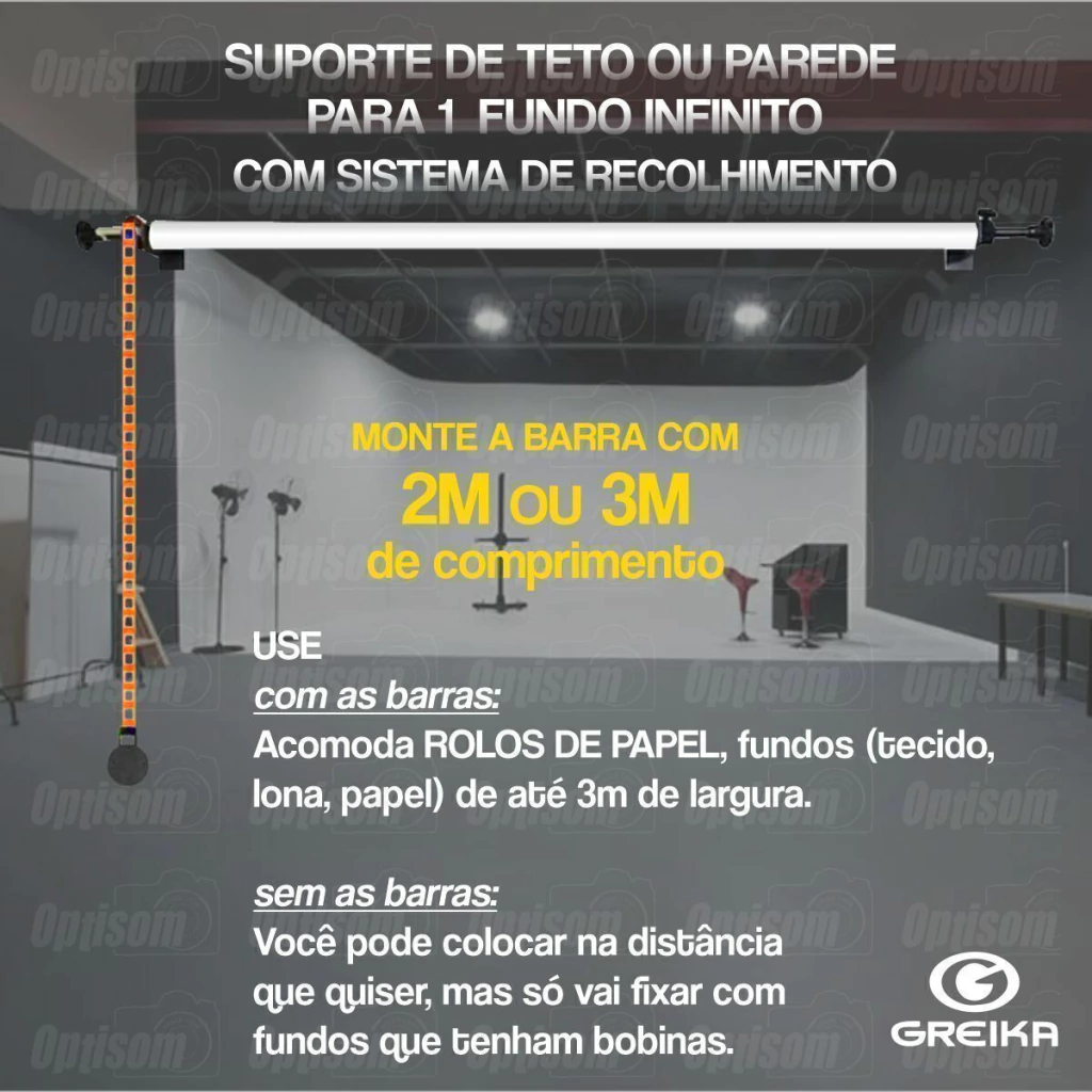 CONJUNTO FUNDO INFINITO 2X5m DE PAPEL + Suporte Parede, teto ou tripés de iluminação Greika ES-B1.