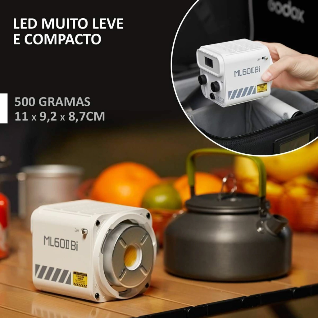 Esse é um Led ULTRA COMPACTO E LEVE, GODOX ML60II Bi de 70W
