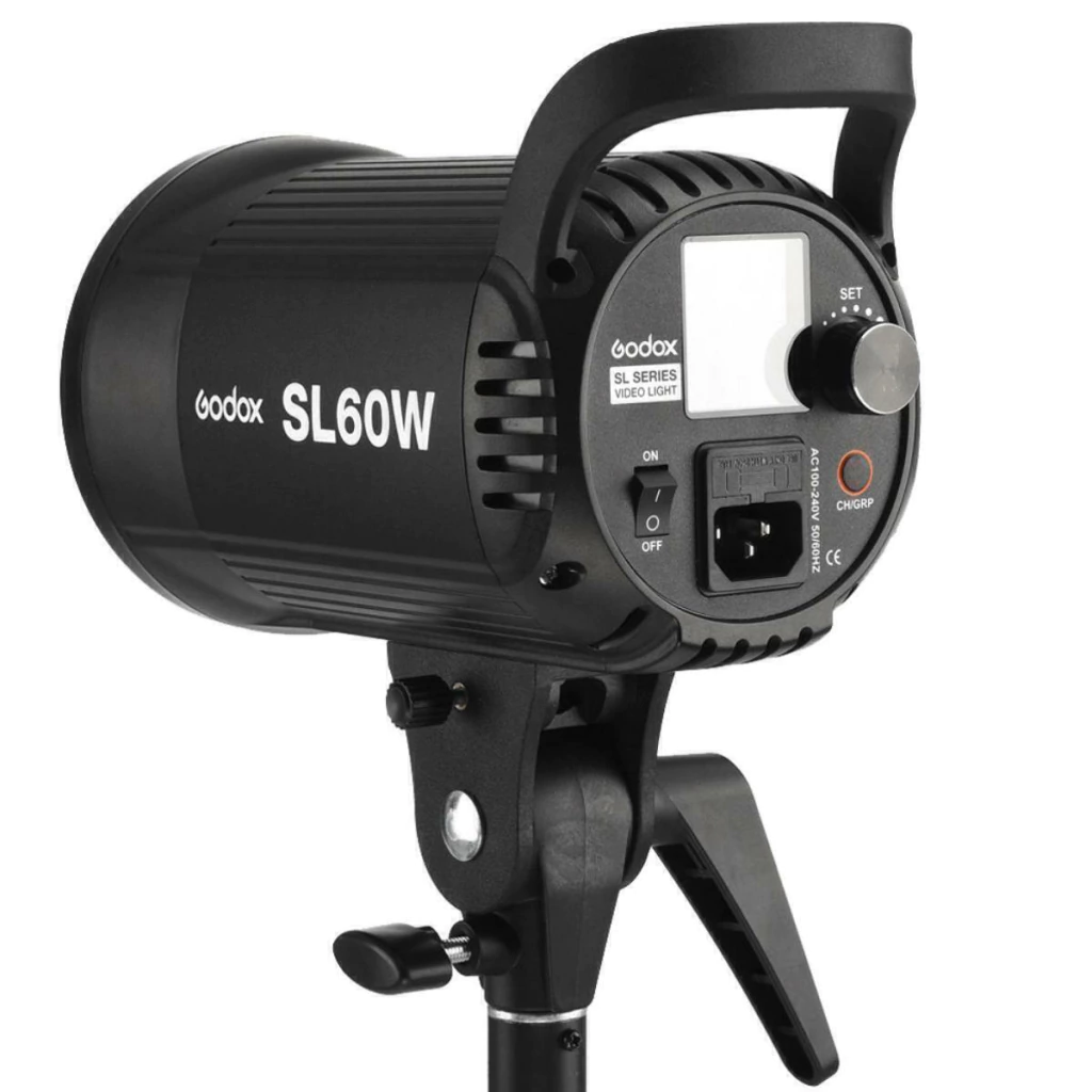 Godox SL60W é uma fonte de luz contínua Bivolt versátil adequada para trabalhos de vídeo, é uma luz de 5600K balanceada para luz do dia com um LED COB (chip on board) para alto brilho e precisão de cor.