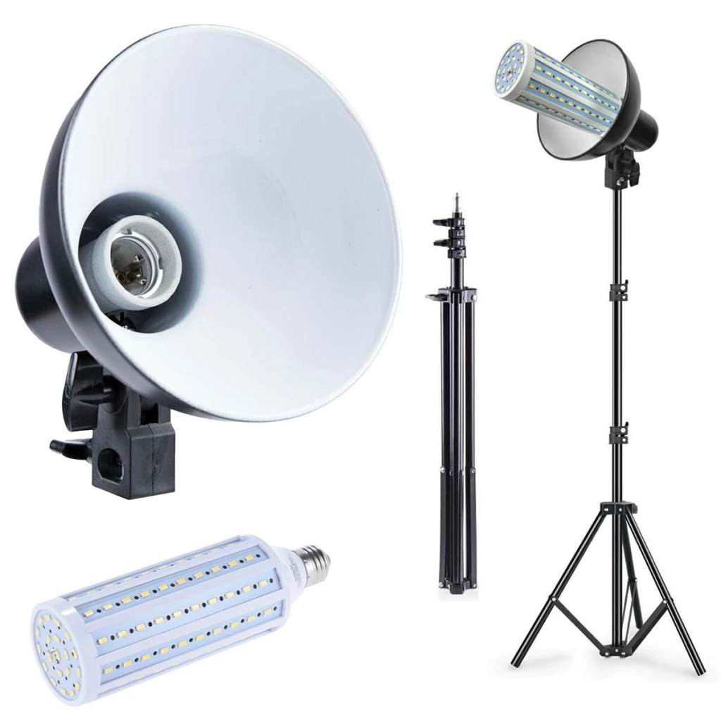 O soquete com panela refletora garante uma distribuição de luz uniforme e direcionada, maximizando o aproveitamento da iluminação. Com fácil montagem e desmontagem, este kit é perfeito para estúdios profissionais, produções audiovisuais e até mesmo para uso doméstico.