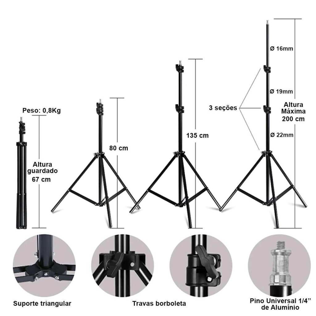 Altura máxima do tripé: 2 metros