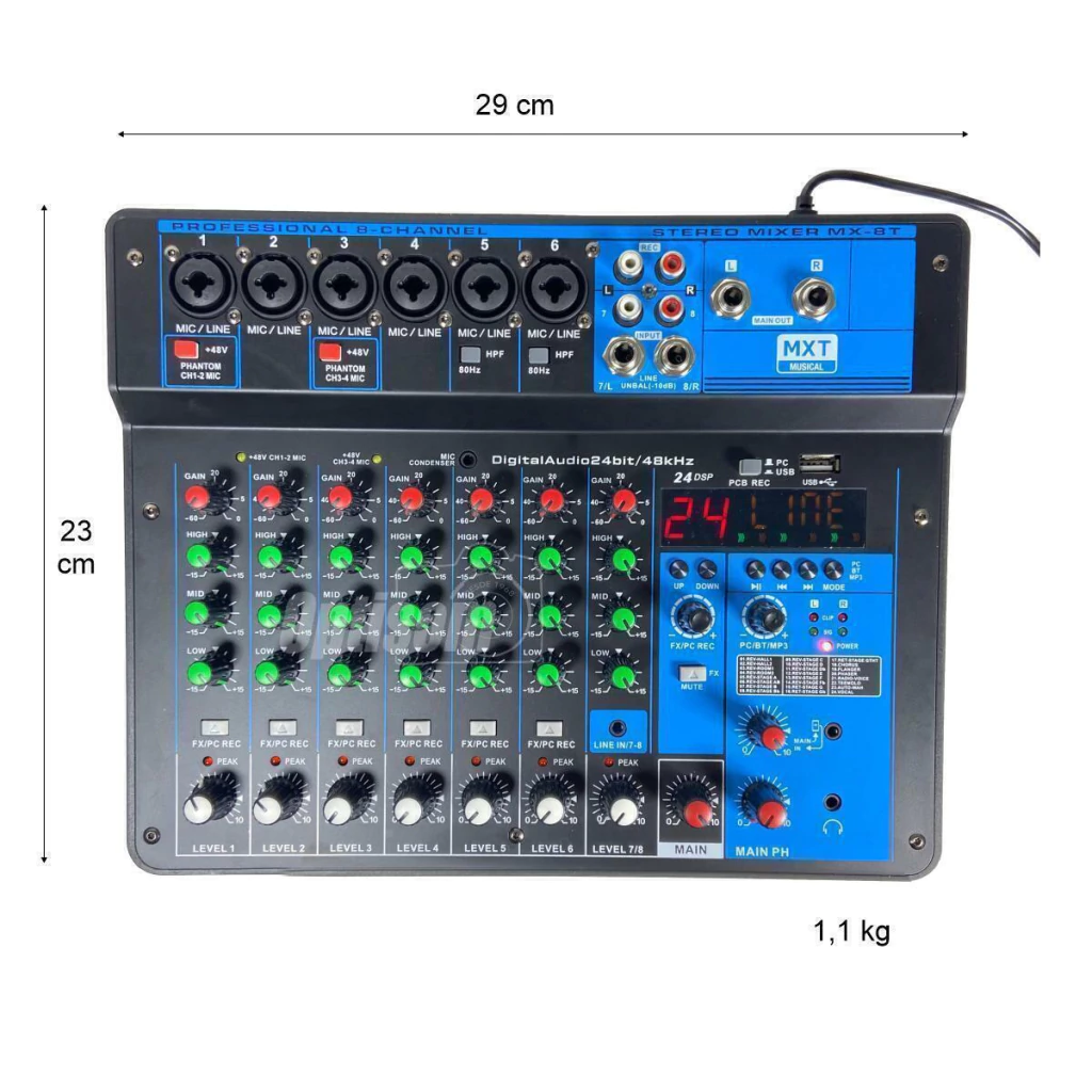 01 Mesa de som Interface USB MXT MX-8T de 8 canais