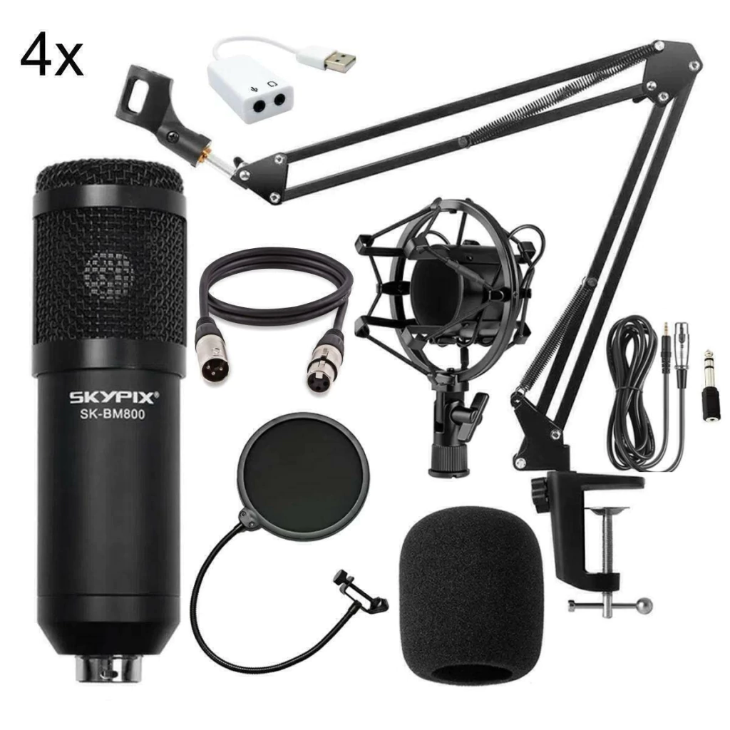 Kit podcast com 4 microfones condensadores COMPLETO com