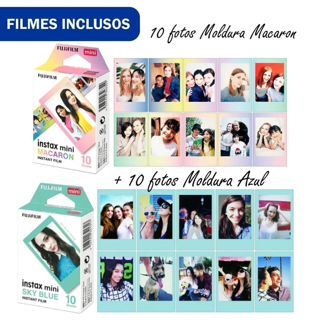 HORA INSTAX MINI 12 + FILME MACARON 10 FOTOS + FILME SKY BLUE 10 FOTOS