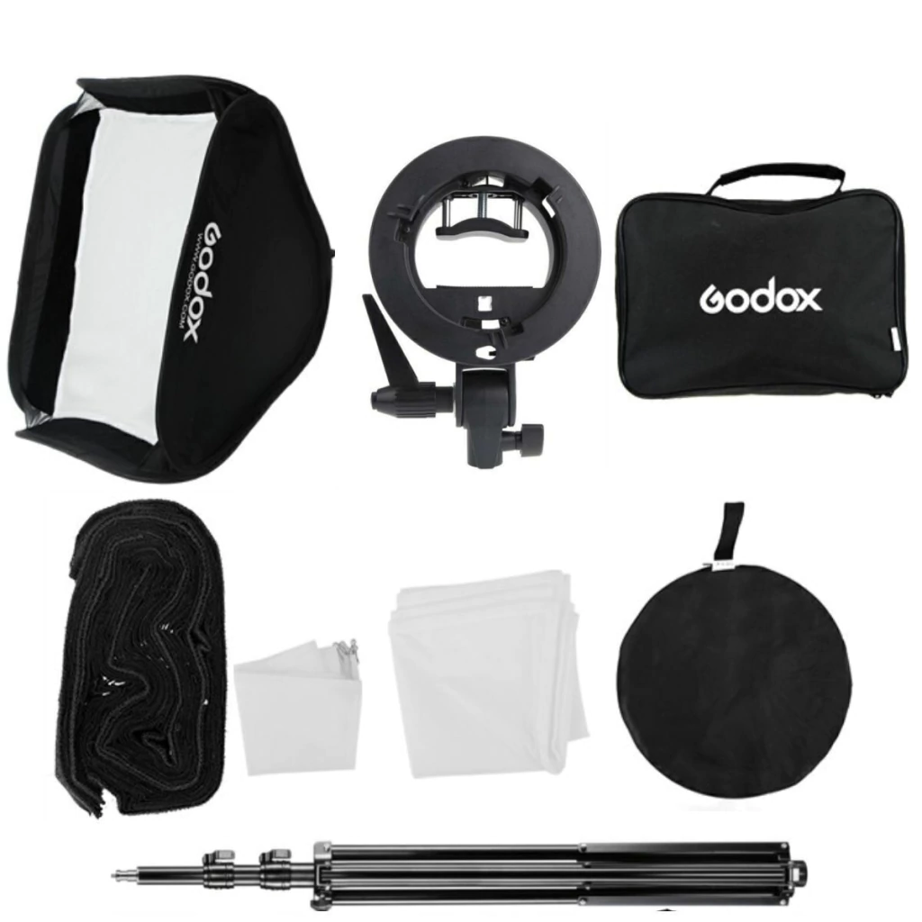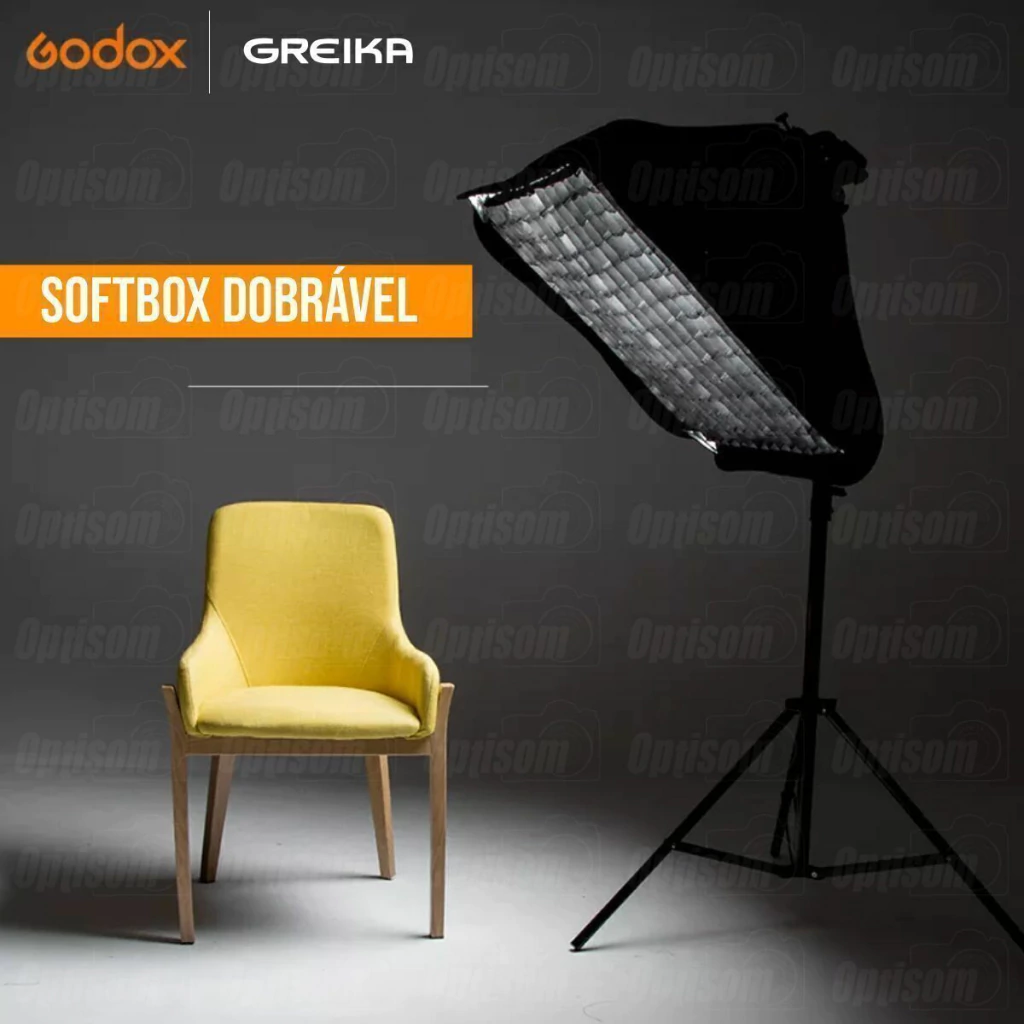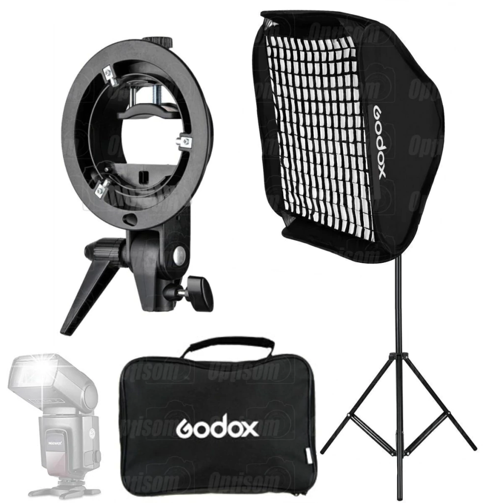 Kit Softbox Godox 80 x 80cm com tripé e grid colmeia , compatível com o flash dedicado.