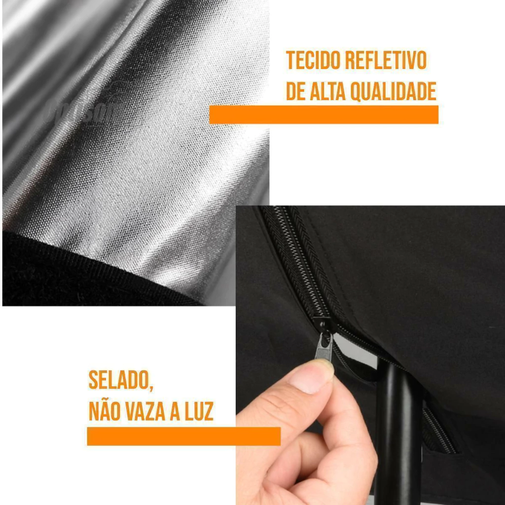 e portátil de fácil manuseio, o softbox fecha igual um guarda-chuva.