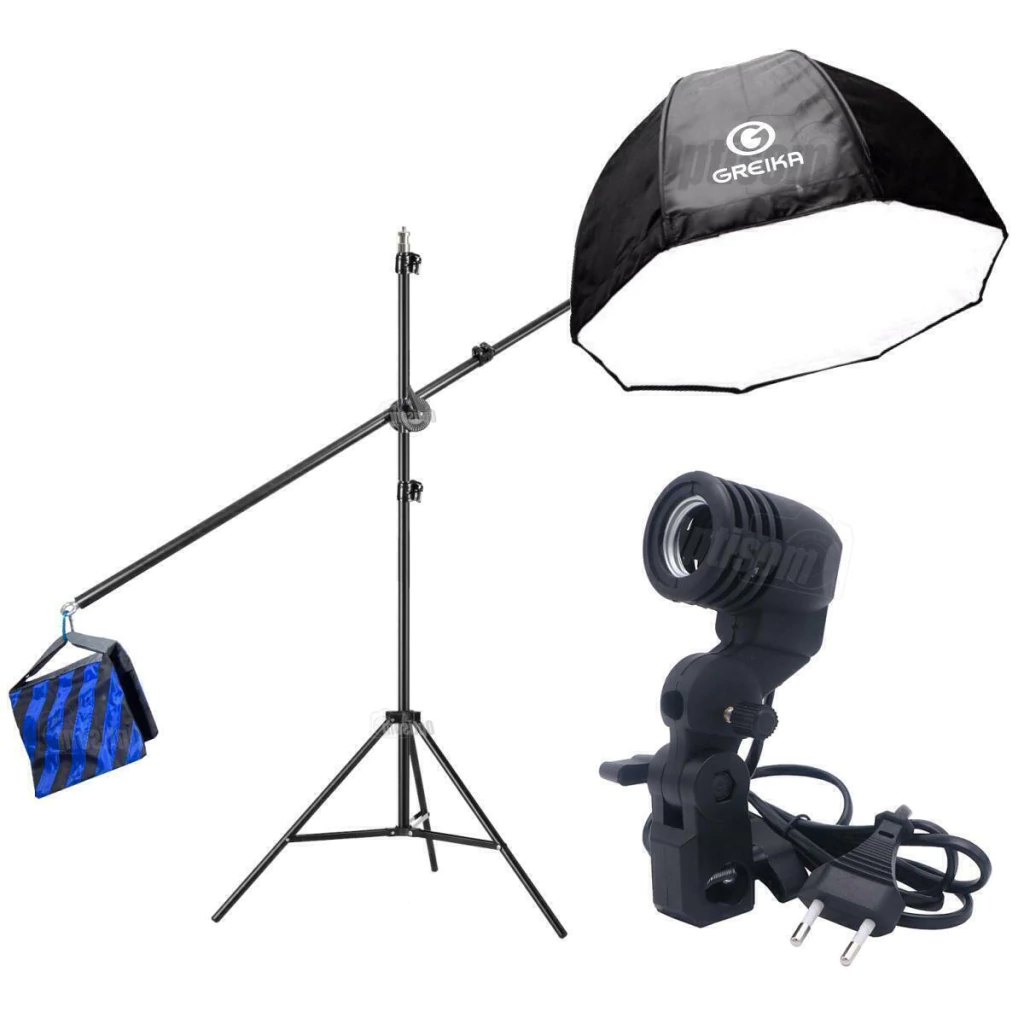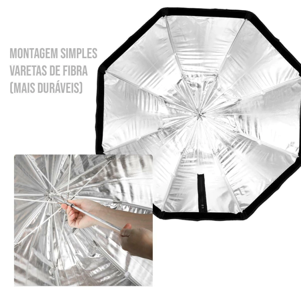 KIT SOFTBOX 120CM OCTAGONAL COM SOQUETE BOCAL PARA LÂMPADAS