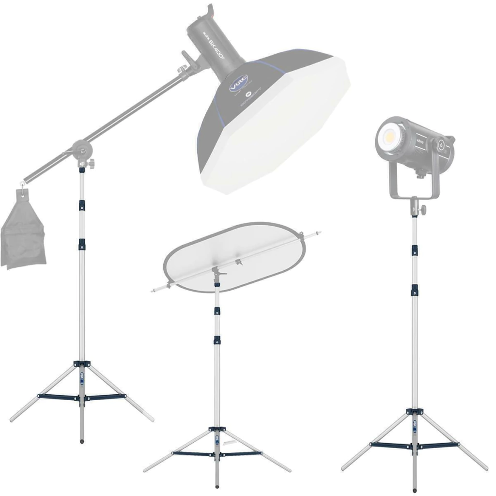 Combo 3 tripés mako para iluminação com altura máxima de 1,83 m de 2 seções.