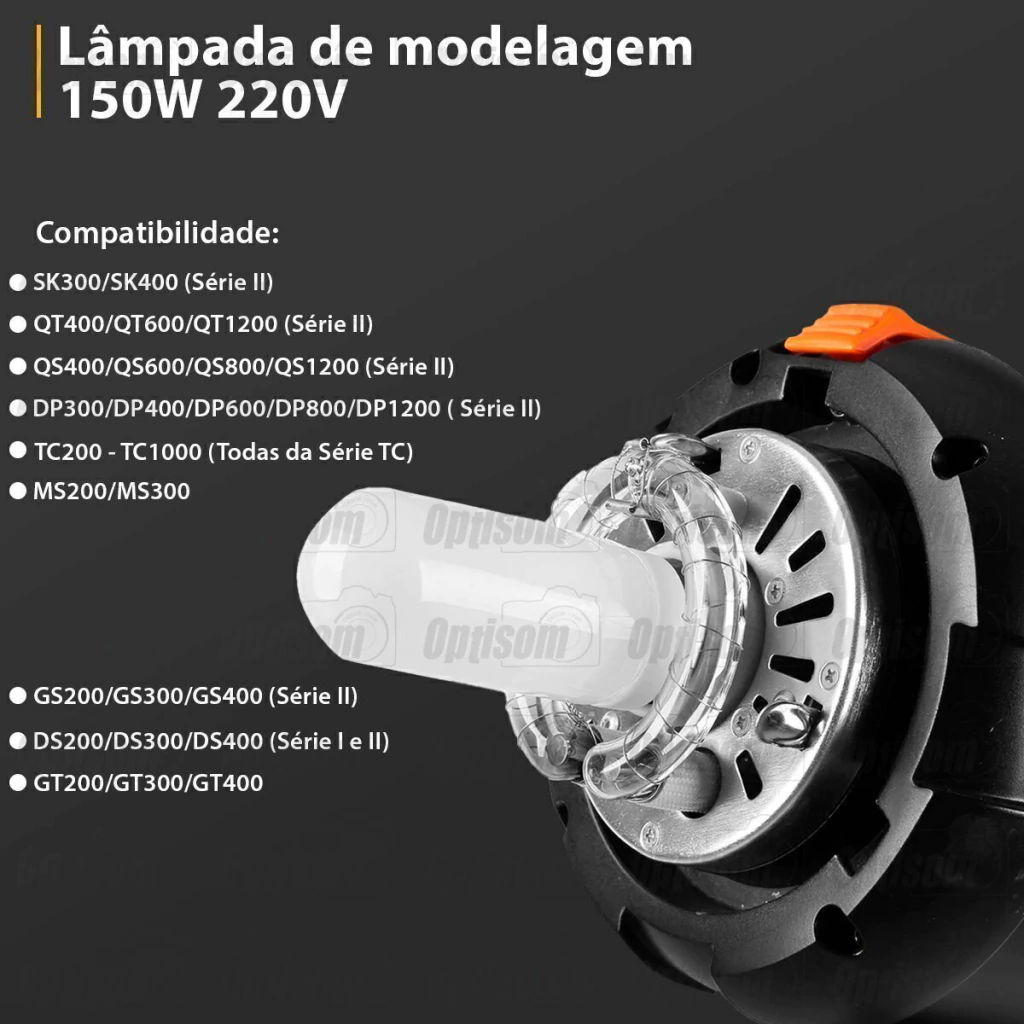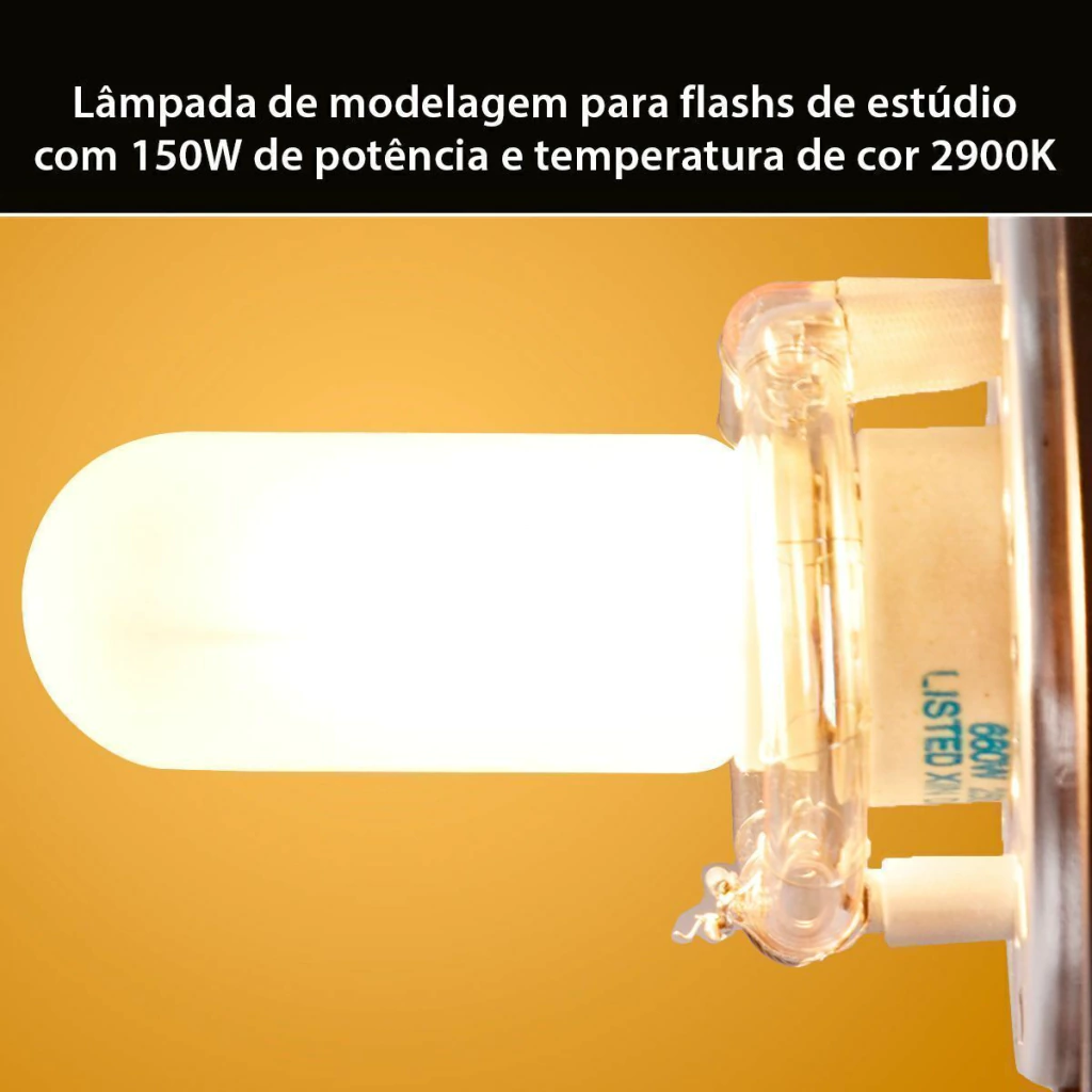 Este modelo de lâmpada distribui uniformemente a luz no interior dos modificadores de luz devido a fabricação em vidro fosco.