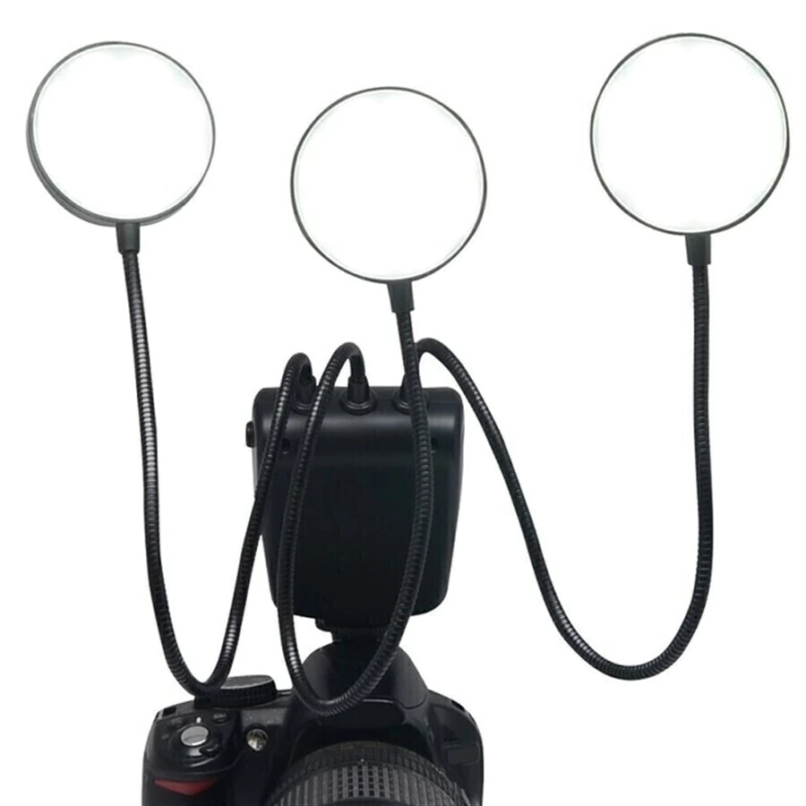 Iluminador e Flash (2 em 1) Greika ML-3D com 3 pontos de luz é ideal para fotografia macro.