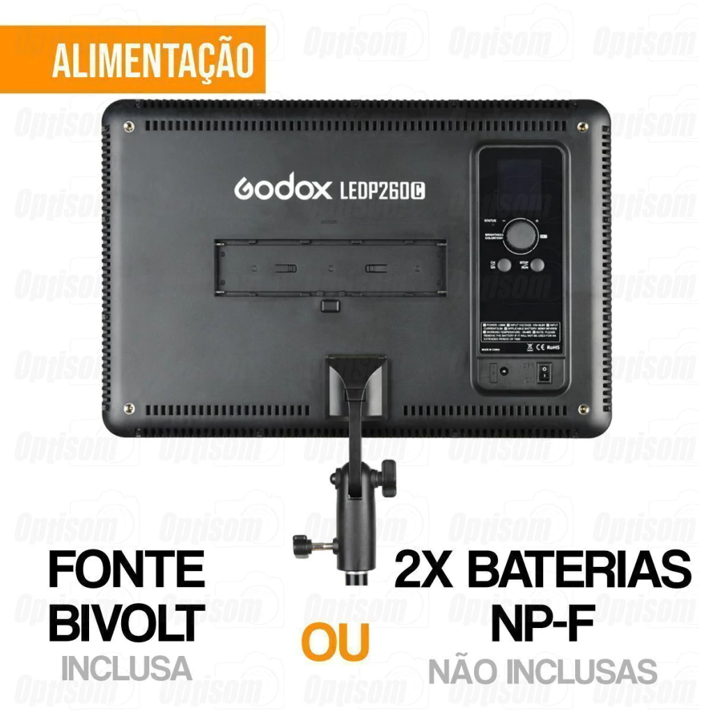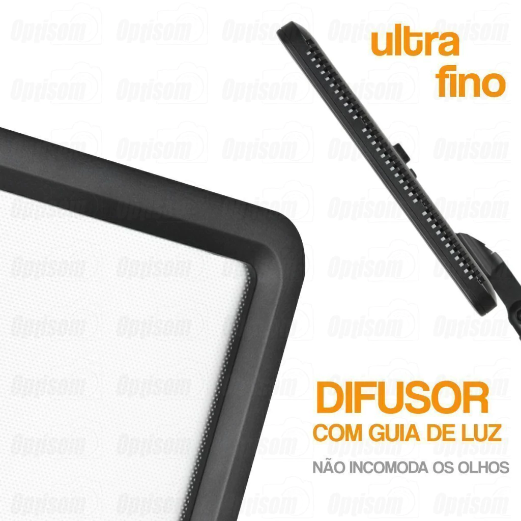Iluminador Led Godox LEDP260C, possui um grande painel super fino que não pesa, fácil de transportar.