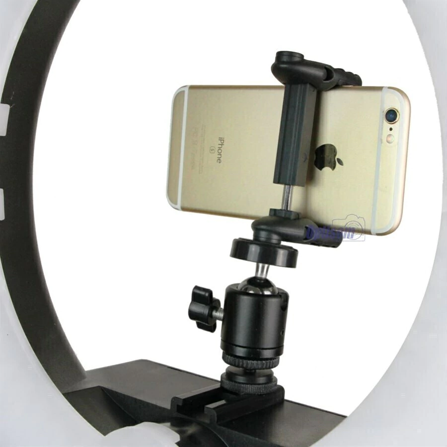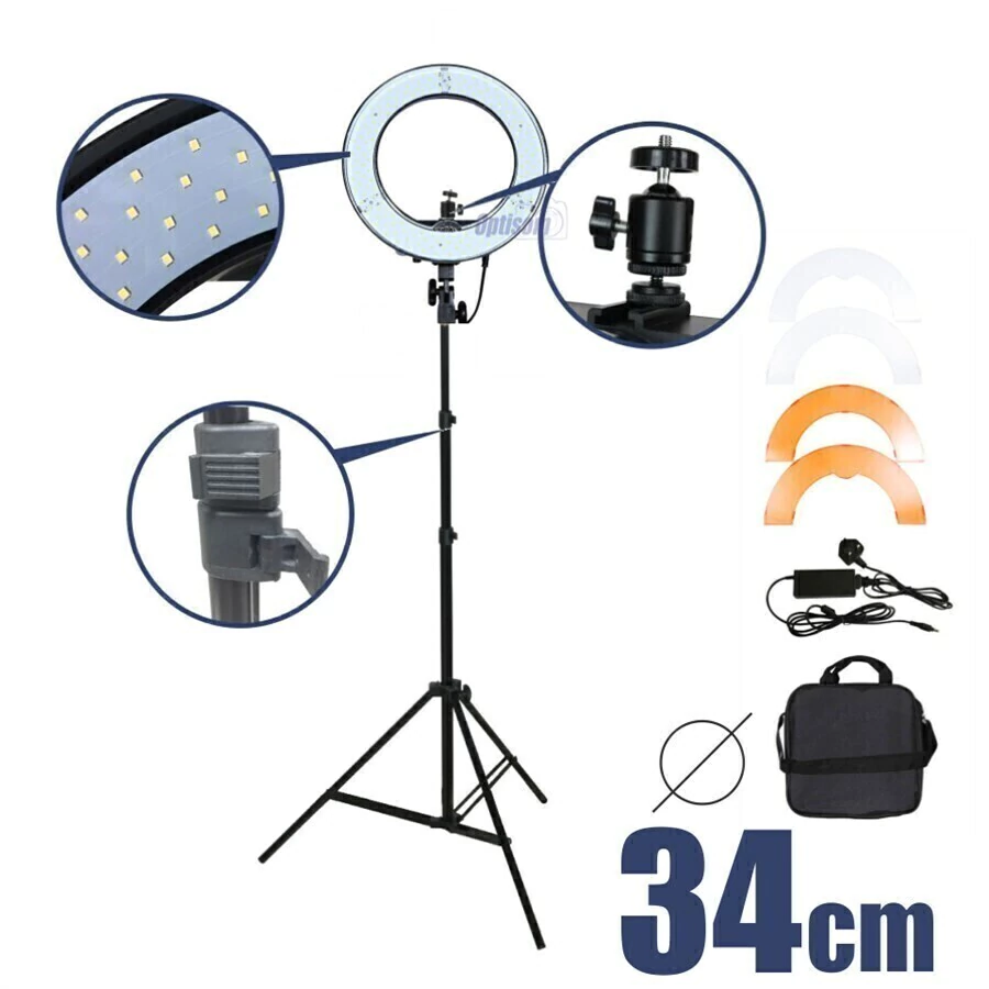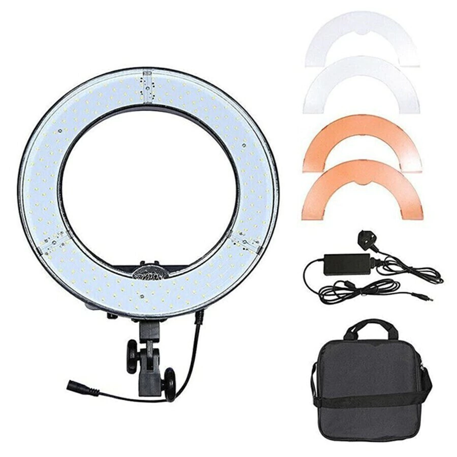 Ring Led Light completo, é um iluminador em especial desenvolvido para maquiadores que buscam uma ótima maneira de visualizar o rosto de seus clientes na hora em que for maquiar eles. Mas nada impede de ser usado em outras aplicações como para produção de fotos de produtos para e-commerce, videos institucionais em entre outros. O seu ring Led já vai completo a câmera (até 1kg) ou smartphone pode ser montada no centro do Led por meio do suporte incluso no kit, acompanha também um tripé de altura ajustável de 72cm até 2 metros de altura. Você pode ajustar o ângulo da luz ajustando a articulação de ângulo. Você pode controlar as diferentes temperaturas de kelvins através dos filtros, filtros proporcionam uma temperatura de cor alternativa e a luz sem filtro criaria um holofote direcional. Itens Inclusos 01 Iluminador circular RL12. 01 Filtro difusor. 01 Filtro laranja. 01 Fonte Bi-volt (110 a 220 volts) com cabo de 2,5 metros. 01 Bag Para Transporte. 01 Tripé de iluminação de até 2 metros. 01 Mini cabeça Balhead 01 Suporte para smartphone, com tamanho ajustavel de 5,5cm á 9cm Peso aproximado do kit todo: 2,4 kg Garantia: 06 meses