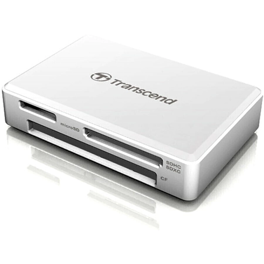 Transfira arquivos dos cartões de memória SD / SDHC / SDXC, microSD / SDHC / SDXC e CompactFlash para o sistema Windows, Mac ou Linux usando o leitor de cartão branco RDF8 USB 3.1 Gen 1 da Transcend.