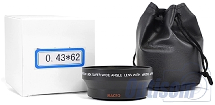 Lente auxilar super grande angular 0,43x e lente super macro, produto 2x1 pode ser usado na frente de qualquer objetiva de cameras reflex medida frontal da rosca 62mm, elemento optico de alta defeinição com camada anti-reflexo.