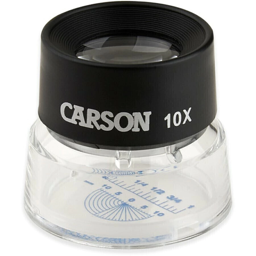 O LumiLoupe LL-20 10x da Carson é um poderoso ampliador de suporte com uma útil retícula no interior para ajudá-lo a medir o tamanho do seu objeto. O retículo mede em milímetros e polegadas. A lupa é acesa usando luz ambiente.