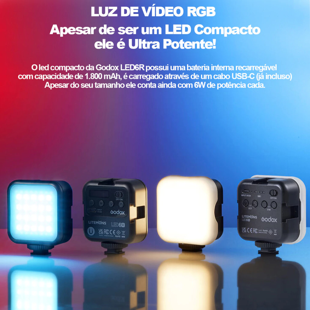03 Led RGB Godox Litemons Compacto de 6W