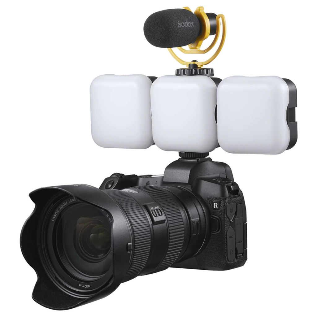 Este kit de iluminadores Led RGB triplo compacto Godox Litemons possui uma montagem flexível, podendo ser adicionado mais leds como estes para amplificar a potência de iluminação (Por exemplo; este kit possui 18W de potência), fora isso, pode ser acoplado no encaixe de sapata da sua câmera, se tornando ideal para o uso em fotografias, vídeos e muito mais.