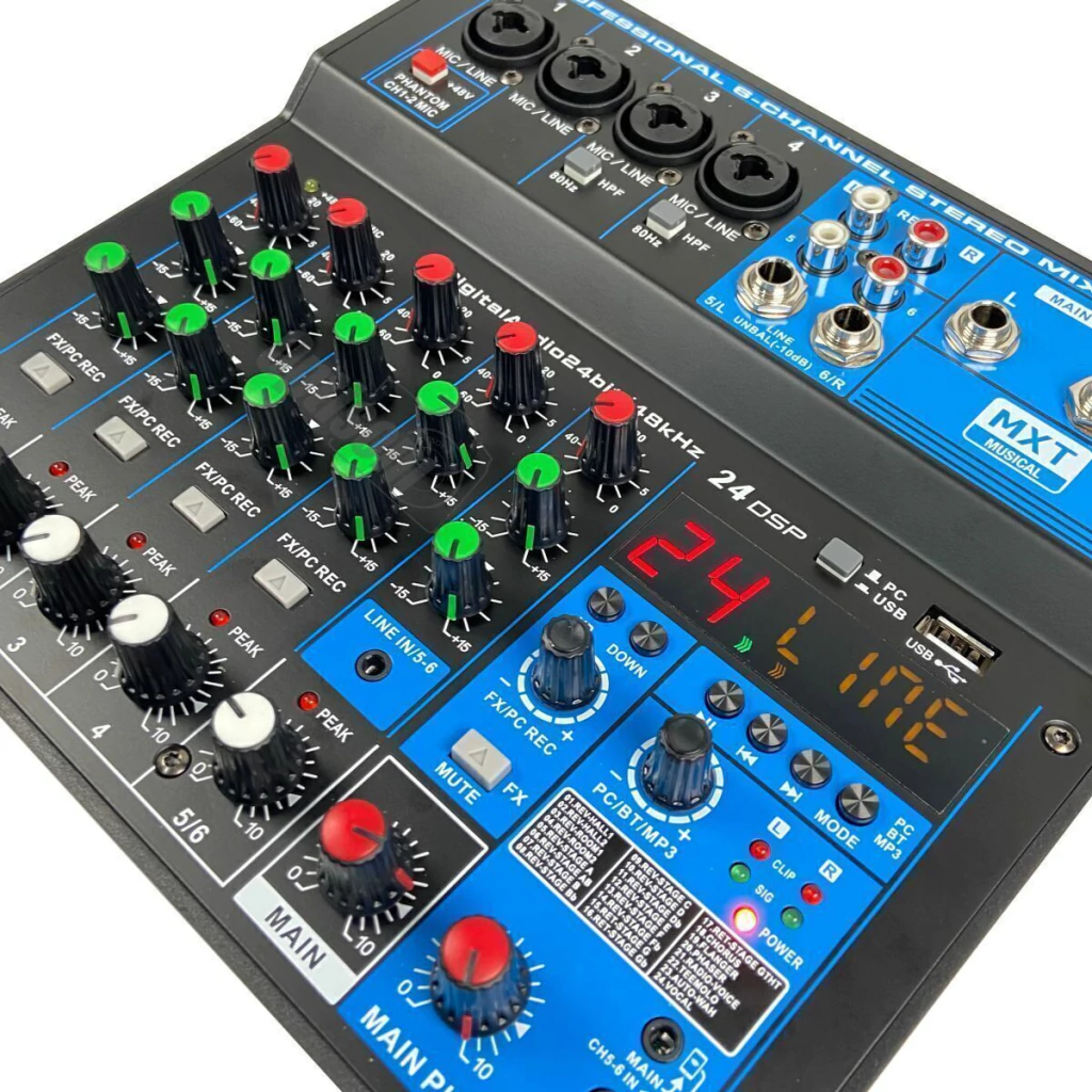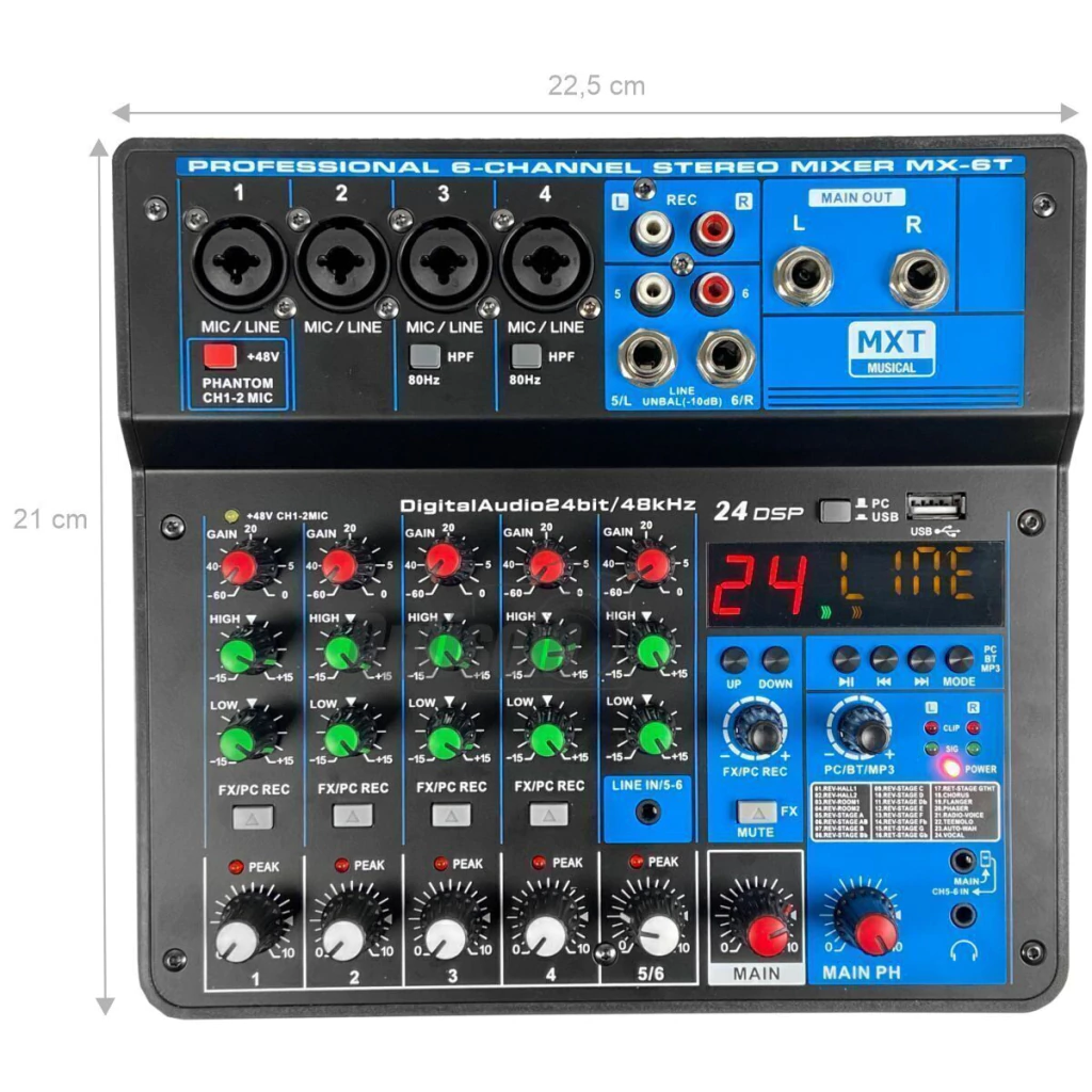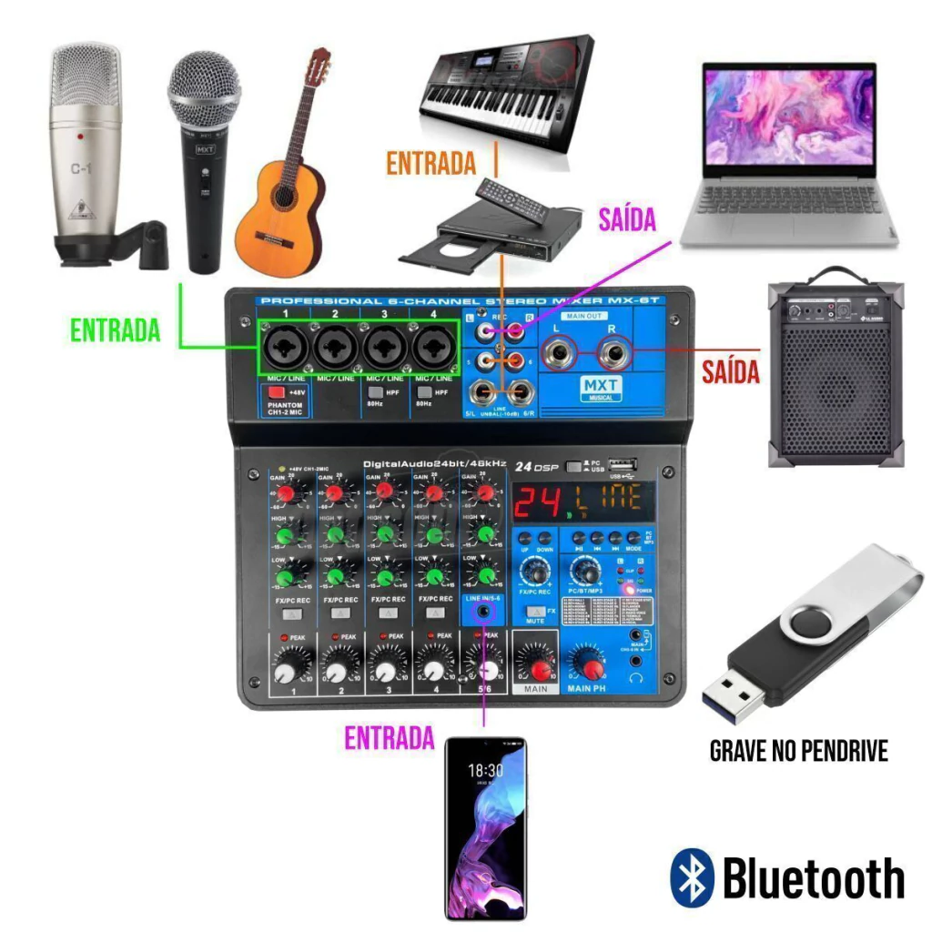 01 Mesa de som Interface USB MXT MX-6T de 6 canais Bluetooth;