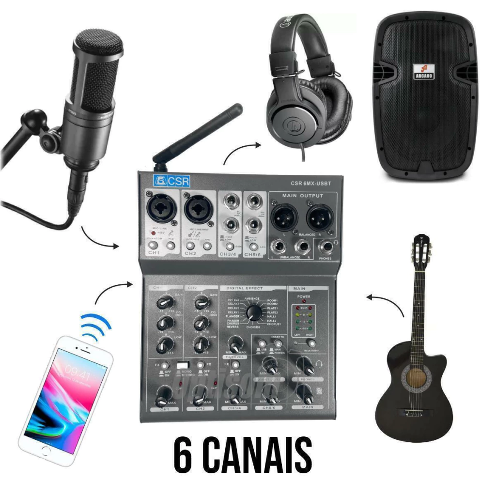 Mesa De Som e Interface USB 6 Canais CSR-6MX USBT Bluetooth