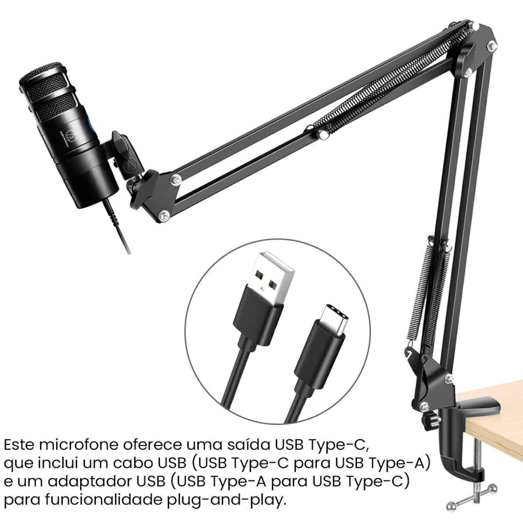 O microfone AT2040USB oferece qualidade de som excepcional, com uma resposta de frequência ampla e detalhada, sendo ideal para gravações de alta fidelidade, podcasts e transmissões ao vivo.