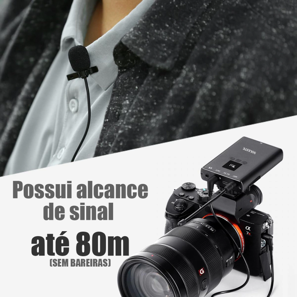 Este microfone de lapela sem fio Soleste WM11 é a opção ideal para utilizar em gravações com DSLR, Mirrorless, Camcordes, smartphones, Computadores, tablets e etc.