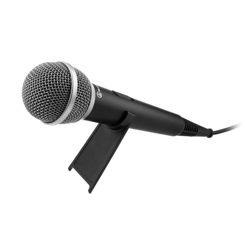Projetado para uso amador avançado, o microfone dinâmico unidirecional ATR1200x mantém a captação concentrada na fonte sonora, Uma opção ideal para uso com máquinas de karaokê, computadores e sistemas de som, o microfone inclui um pedestal de mesa, suporte para pedestal ajustável e um adaptador de 6,3 mm P10.
