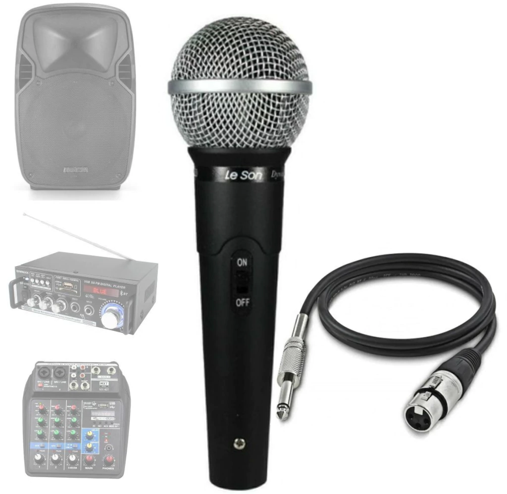 O LS50 da Leson é um microfone de mão unidirecional cardioide com corpo e globo metálicos com pintura de alta resistência, conectores com conector macho XLR e cabo de 5 metros XLR/P10 mono.