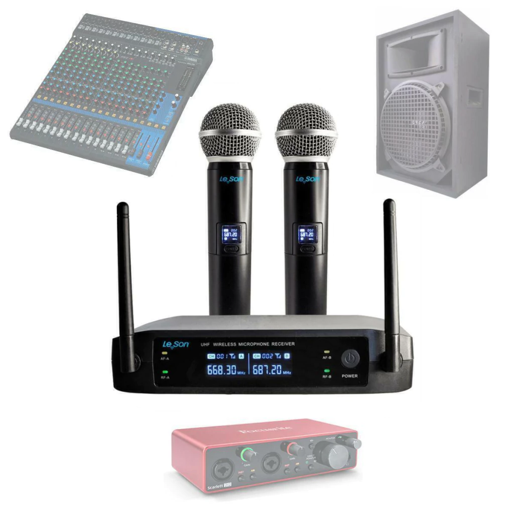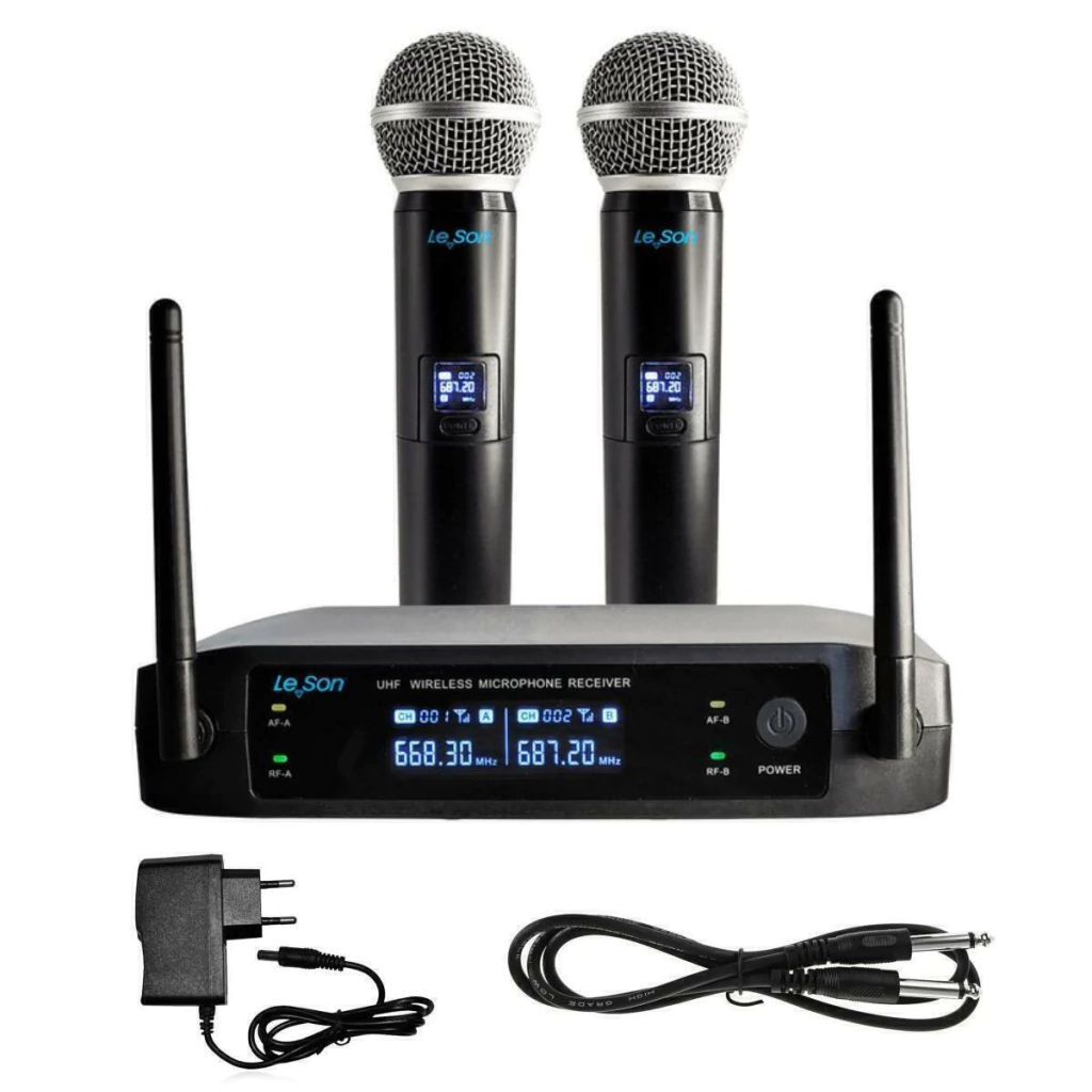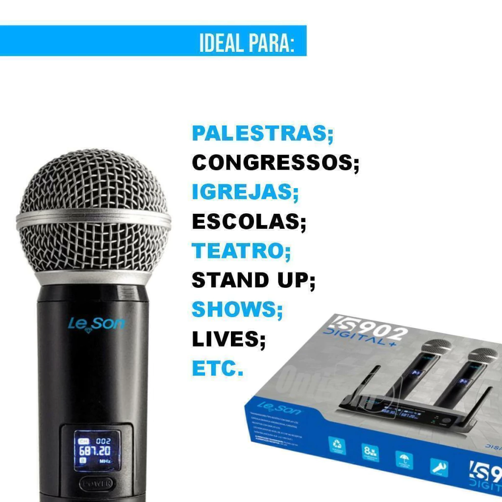 Microfone de mão duplo sem fio, permite maior mobilidade e