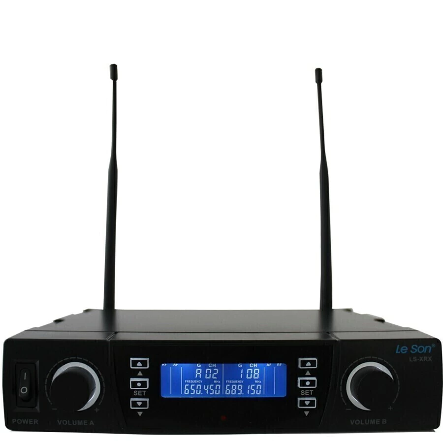 Microfone Ls02 Digital Dual System Leson, este sistema de microfone sem fio trabalha na banda alta de UHF, na faixa de 600 a 699 MHZ, programável até 100 canais. Esta banda de frequência esta de acordo cm as novas normas de utilização do espectro de frequências da ANATEL, para não haver interferências com futuros sistemas de telefonia 4G. Este produto foi projetado com uma série de medidas para melhorar suas funções, tais como: Avanço de frequência, filtros multinível de banda estreita de média e alta frequência e circuitos de detecção e controle de ruído. Criado com um sistema de pareamento que funciona como um código de reconhecimento entre a base e o microfone transmissor, para evitar que interferências externas não identificadas atinjam o sistema.