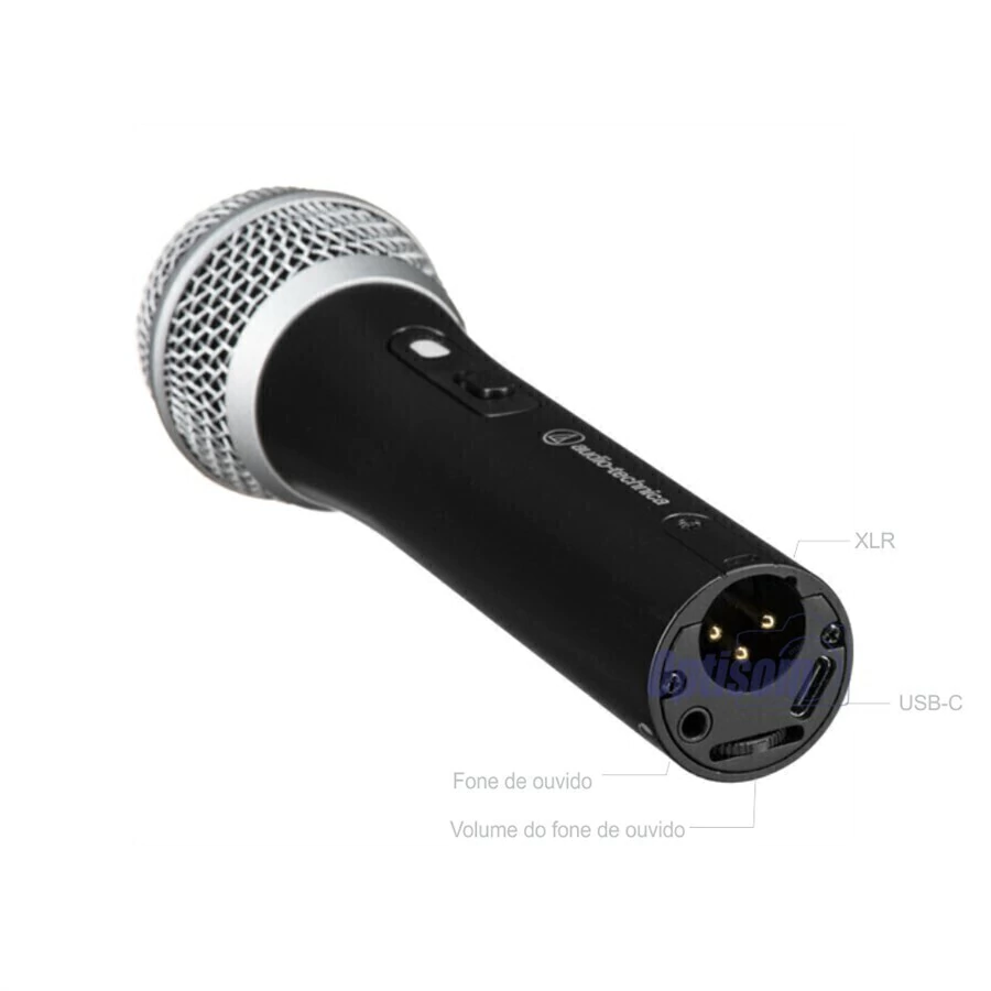 Como microfone digital, o ATR2100x-USB possui funcionalidade plug-and-play via USB Tipo C, resolução digital de até 24 bits / 192 kHz e porta de fone de ouvido de 3,5 mm com controle de volume dedicado.