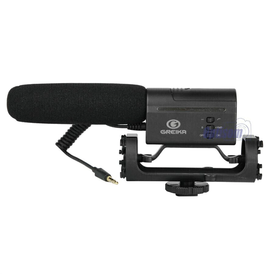 Microfone shotgun GKSM10 da Greika é um microfone eficaz que pode ser facilmente montado em uma câmera de vídeo, pois possui uma sapata integrada que se encaixa à sapata da câmara.Possui uma estrutura leve, porém com material resistente, onde proporciona uma alta qualidade de broadcast, fornecendo assim um áudio excelente para suas filmagens e gravações. Com uma armação simples este microfone consegue adequar-se a qualquer tipo de câmera DSRL que possua entrada para cabo de áudio P2, além de fornecer um ótimo controle de nível, filtro de corte, headphone output e utilizar um sistema de amortecedor de choques na parte inferior ao conectar-se em câmeras ou tripés com pino padrão 1/4. Contando com 3 botões de regulagem, sendo um para filtro de corte, um para controlar o nível de dB (0 à +10) e o outro de liga/desliga para iniciar o funcionamento do microfone. Além destes aspectos, o Microfone Direcional Condensador Greika GK-SM10 também possui uma entrada para fone de ouvido, um indicador de led, uma sapata hotshoe para conectar na câmera DSLR e um compartimento para conectar uma pilha AA (não inclusa) que fornecerá o funcionamento para o Microfone. Itens Inclusos: Microfone Direcional Protetor De Espuma; Protetor Ded Cat Bolsa Para Armazenamento Peso: 340g Garantia: 06 meses