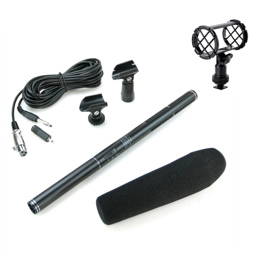 Microfone Direcional Shotgun CSR Yoga HT-81 com suporte shock mount anti choque, é um modelo de microfone super unidirecional para uso em captações de som para produtos sonoros e audiovisuais, em Câmeras Dslr, Filmadoras e até conectado em um gravador externo.