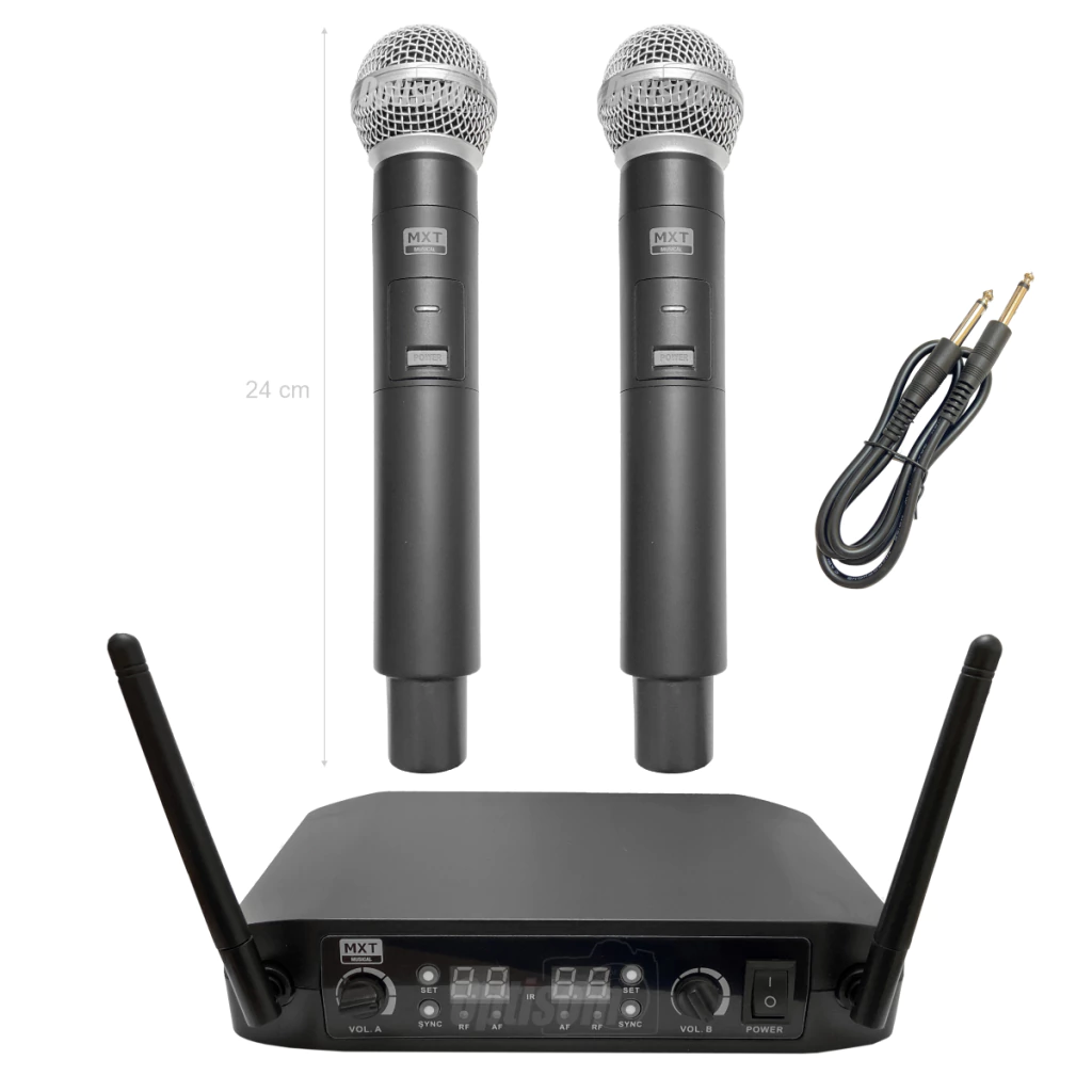 Sistema de microfone sem fio duplo perfeito para igrejas, cultos, palestras, eventos ao vivo, entrevistas, conferências, entre outro eventos.