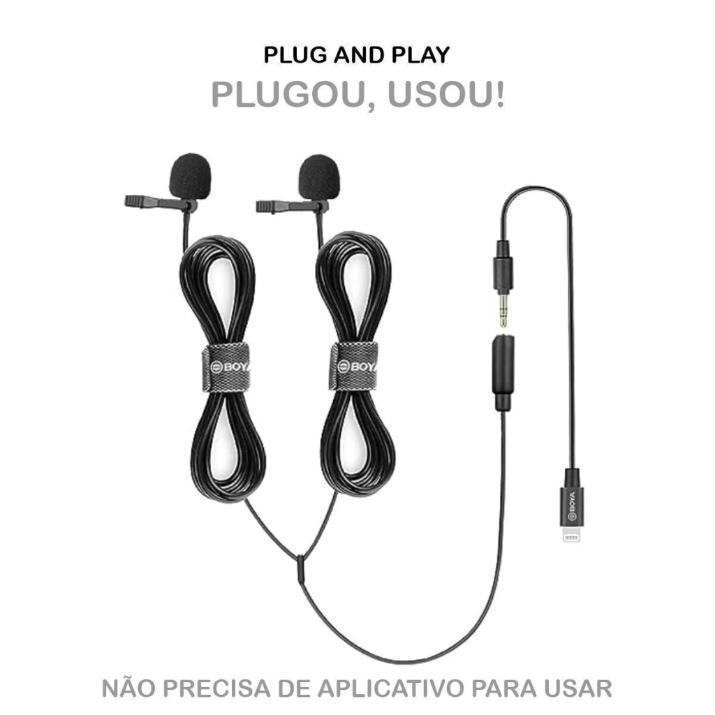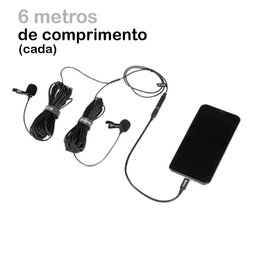 01 Microfone lapela duplo 6 metros com conector fêmea P2 (6 m);